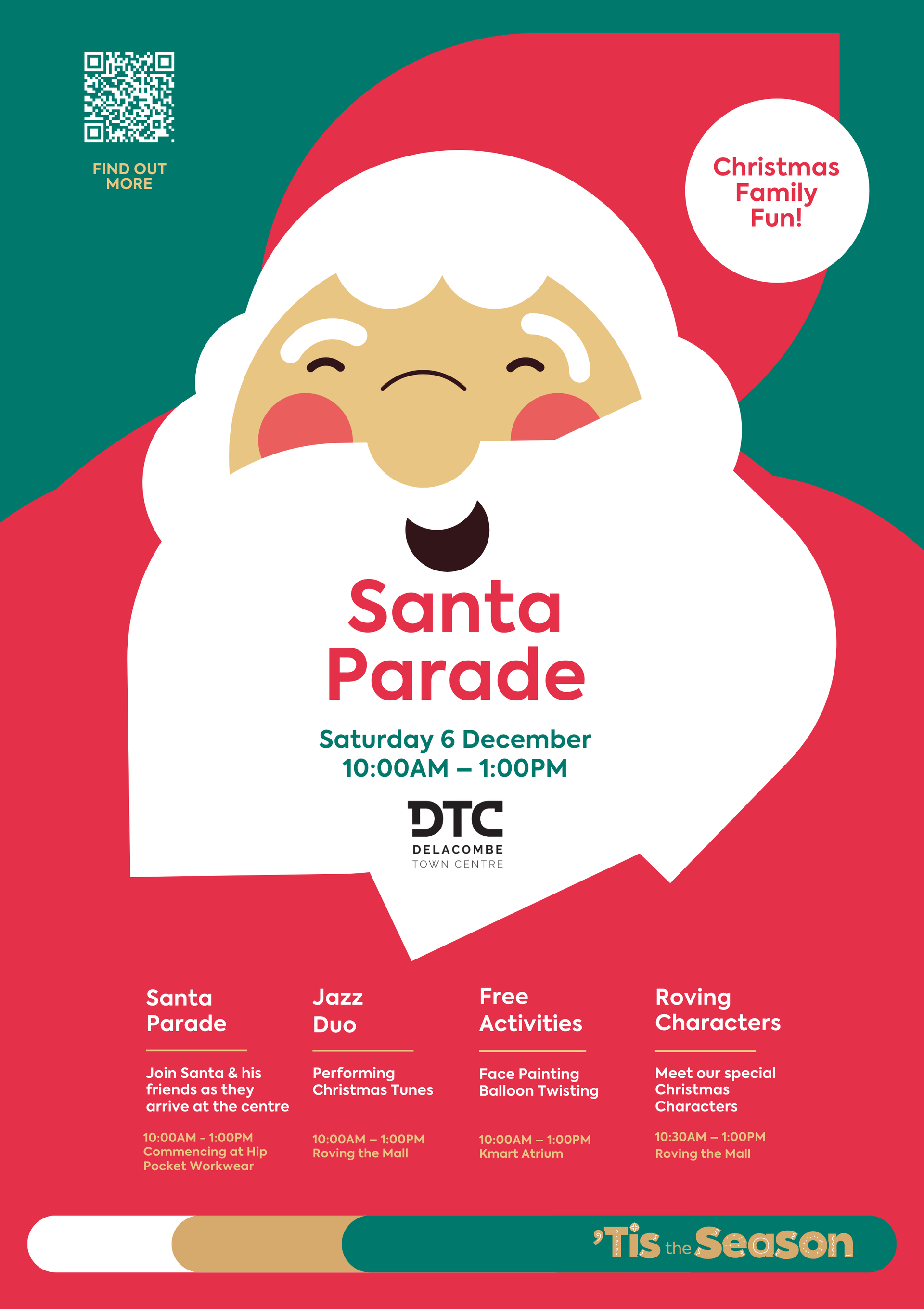 Join Santa, Mrs Claus, and a range of your favourite Christmas characters at Delacombe Town Centre, Saturday 6th December for all the fun of our Santa Parade!